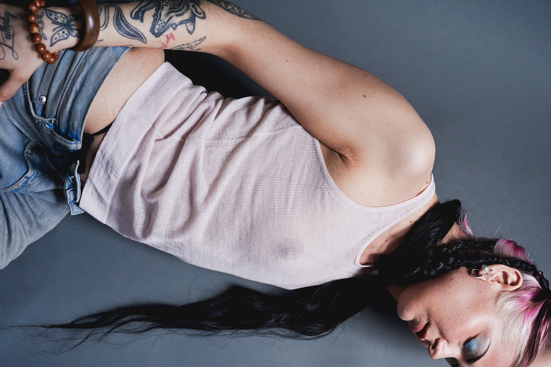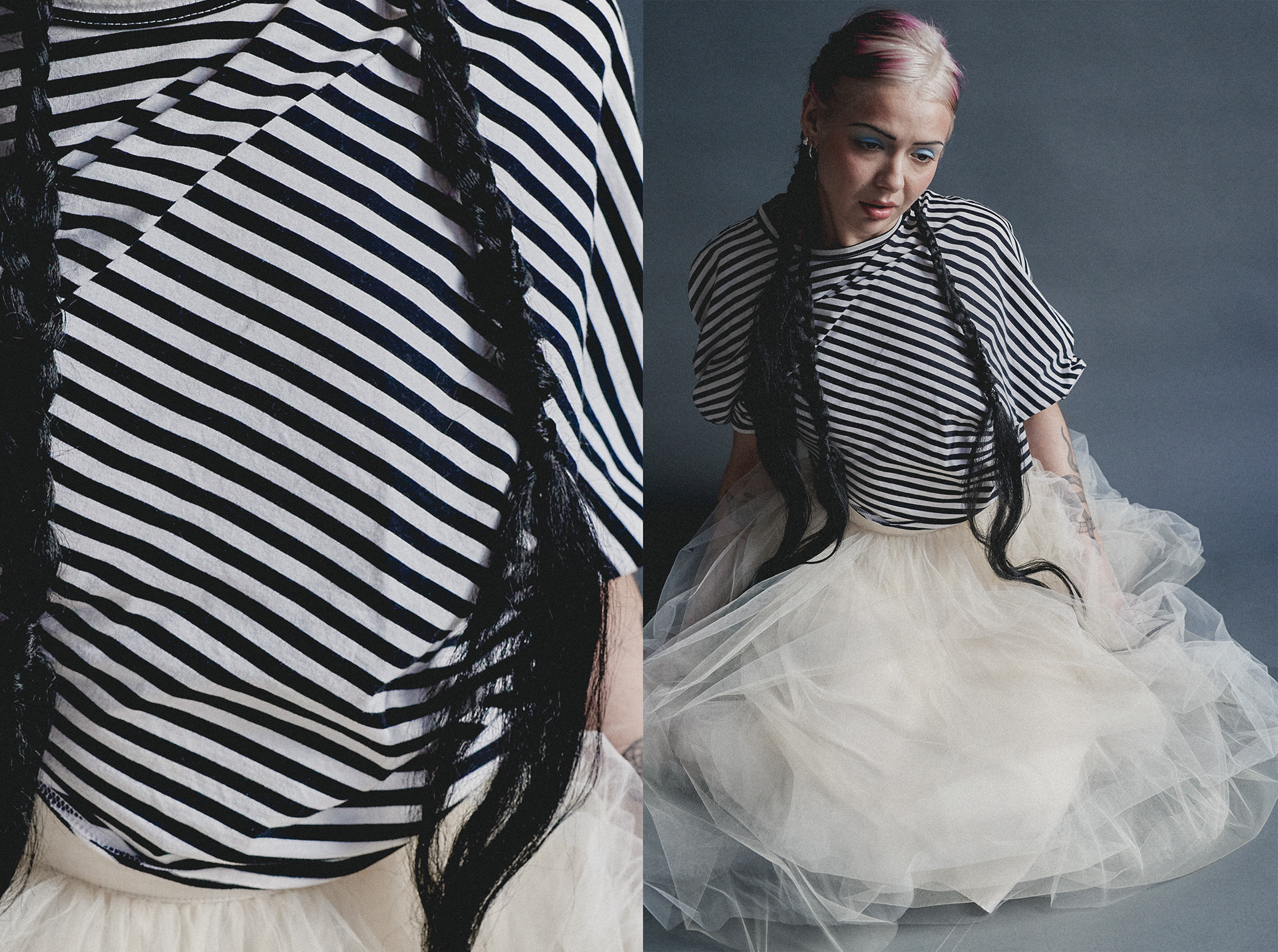 Styling singer/ songwriter Dalilah for a creative shoot to highlight hairstylist Lydia McCourt’s work, with a focus on showcasing hair colour and hairstyling. The wardrobe was intentionally minimal and complementary, allowing the hair to remain the focal point while maintaining a cohesive visual direction.